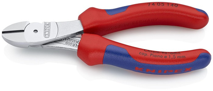 20 % Kraftersparnis gegenüber herkömmlichen Seitenschneider · Schneiden zusätzlich induktiv gehärtet, Schneidenhärte ca. 64 HRC · Chrom-Vanadin-Hochleistungsstahl, geschmiedet, mehrstufig ölgehärtet Zange verchromt Weitere technische Eigenschaften: · Material: Chrom-Vanadin-Hochleistungsstahl · Form: 0 · Norm: DIN ISO 5749