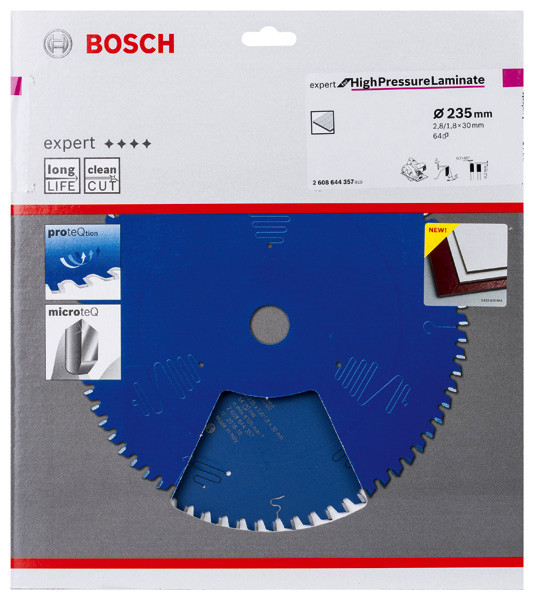 Expert for High Pressure Laminate Kreissägeblatt für das Schneiden von Hochdruck-Schichtpressstoffplatten. Das Blatt ist mit Extra Hard Microteq-Zähnen versehen, die bei Bosch in Eigenproduktion aus hochgradig robustem Carbide-Korn gefertigt werden. Die gute Qualität, die Holzarbeiter erwarten, die Fähigkeit, extreme Bedingungen bei professionellen Konstruktionen zu bewältigen. Die Schutzbeschichtung des Blatts fördert diese hohe Leistung, sie verhindert Korrosion, ermöglicht zuverlässiges Schneiden und reduziert dabei Reibung. Das Produkt ist mit Dämpfungsschlitzen für einen besonders ruhigen Lauf, deutlich weniger Geräusche und spürbar geringere Vibration ausgestattet. Dieses Sägeblatt bei Hochdruck-Schichtpressstoffplatten verwenden. Mit HLTCG-Zähnen (High-Low Triple Chip Ground) ist das Kreissägeblatt Expert for High Pressure Laminate robust auf die Arbeit mit abrasivem Material ausgelegt.