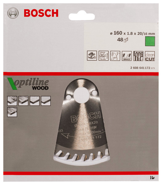 Kreissägeblatt Optiline Wood für Handkreissägen, 160 x 20/16 x 1,8 mm,