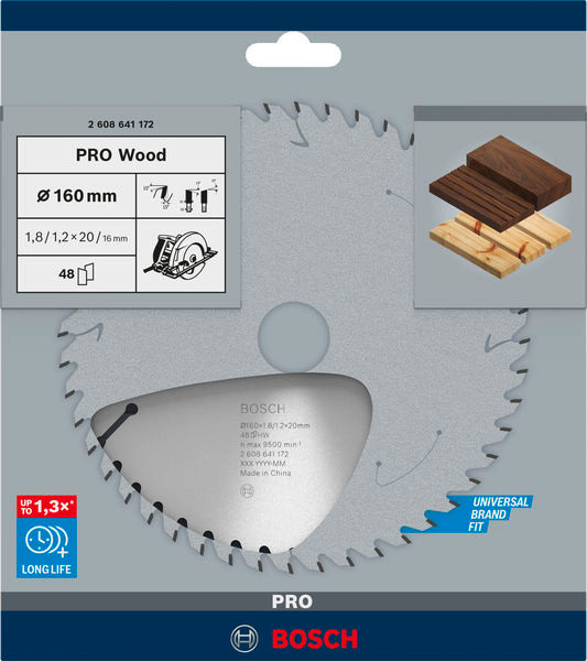Herausragende Lebensdauer in Holz! Geschliffene und geschärfte feine Carbide-Zähne für Festigkeit, Langlebigkeit und Präzision Das PRO Wood Kreissägeblatt wurde entwickelt, um deine Herausforderungen beim Schneiden von Massivholz und Holzwerkstoffen aller Arten zu meistern. Es ist stark und ausgewogen, damit du saubere und präzise Schnitte machen kannst – über einen langen Zeitraum. Das PRO Wood Kreissägeblatt ist eine sehr gute Wahl für Holzarbeiter, die Massivholz und Holzwerkstoffen aller Arten bearbeiten. Unser Kreissägeblatt für Holz verfügt über präzisionsgeschliffene Carbide-Zähne für Stabilität und Haltbarkeit. Die Basis aus gehärtetem Stahl sorgt für Stabilität und einen präzisen Schnitt. Die Dehnungsschlitze reduzieren die Wärmeentwicklung und sorgen so für eine lang anhaltende Leistung.
