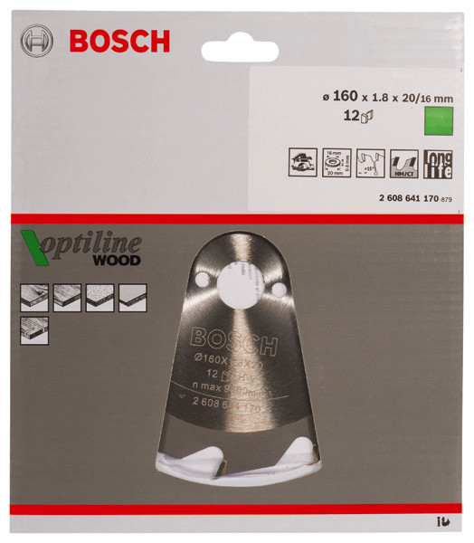 Kreissägeblatt Optiline Wood für Handkreissägen, 160 x 20/16 x 1,8 mm,