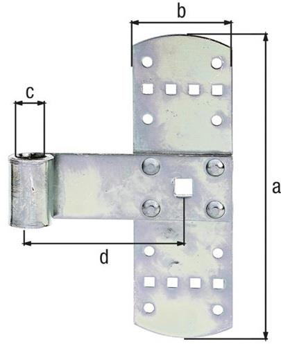 Material: Stahl roh, Oberfläche: galvanisch verzinkt, dickschichtpassiviert Weitere technische Eigenschaften: · Maß a: 160mm · Maß b: 50mm · Maß c Ø: 13mm · Loch-Ø: 5 / 5,5 x 5,5 / 9 x 9mm · Maß d: 75mm