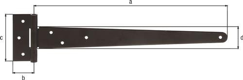 mit versenkten Schraublöchern und losem Stift Weitere technische Eigenschaften: · Maß a: 397mm · Maß b: 40mm · Maß c: 90mm · Oberfläche: kataphoretisch aufgetragener schwarzer Tauchlack