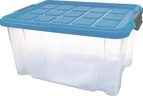 Polypropylen · Farbe transparent · für viele Anwendungen in Gewerbe und Haushalt · leicht zu reinigen · ineinander und aufeinander stapelbar · mit farbigen Deckel Weitere technische Eigenschaften: · Innenlänge: 390mm · Innenbreite: 290mm · Ausstattung: mit Deckel