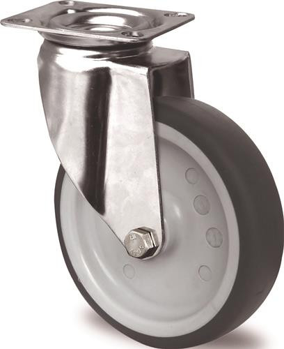 Lenkrolle D.100mm Trgf.100kg m.Platte Platten-B.67mm Gleitlager VA TPE TECWERK