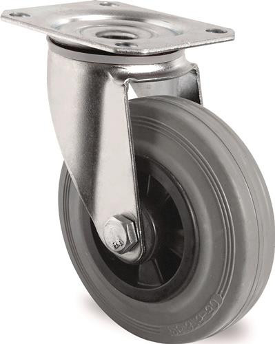 Lenkrolle D.200mm Trgf.205kg m.Platte PP Rollenlager VG grau TECWERK
