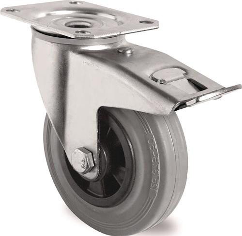 Lenkrolle m.Festst.D.200mm Trgf.205kg m.Platte Rollenlager VG grau TECWERK