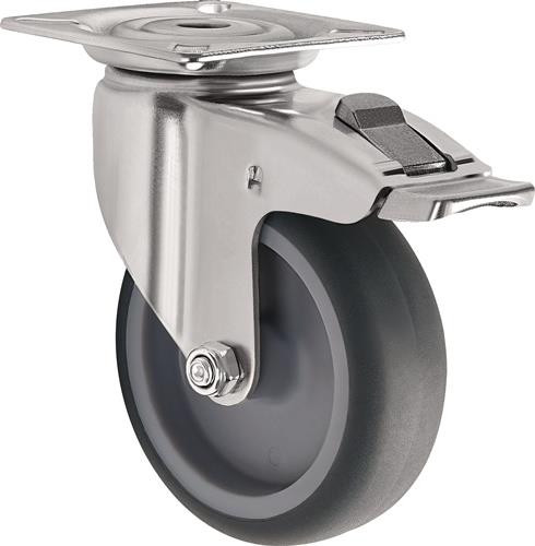 Lenkrolle m.Festst.D.75mm Trgf.75kg m.Platte Gleitlager Gum.grau TECWERK