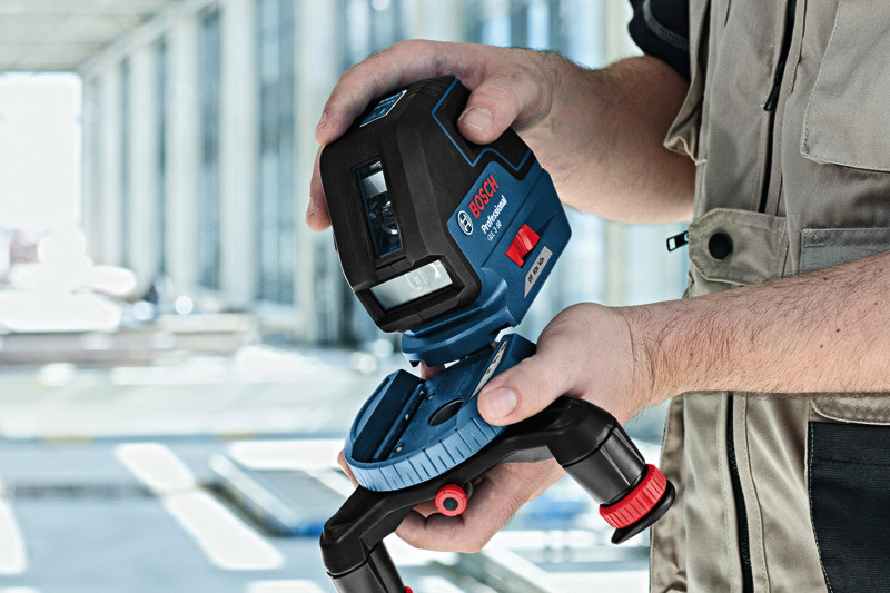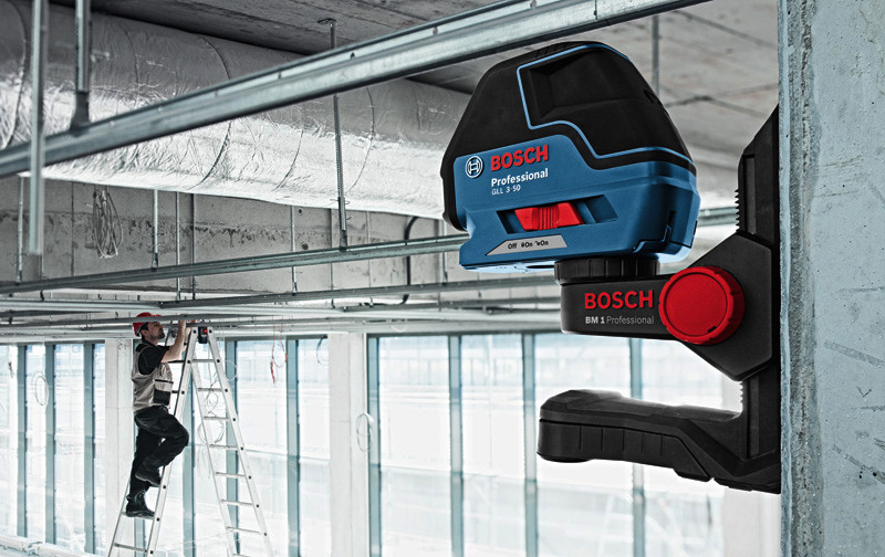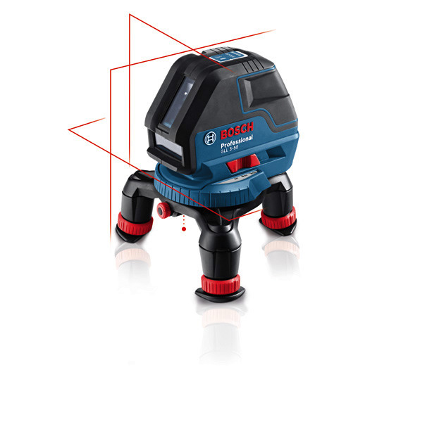 Linienlaser GLL 3-50, Komplexes Nivellieren einfach gemacht – der benutzerfreundliche Kreuzlinienlaser GLL 3-50 Professional wurde für Flexibilität bei allen gängigen Nivellier- und Übertragungsanwendungen konzipiert. Zwei vertikale Laserlinien, eine horizontale Laserlinie und der Lotpunkt ermöglichen eine beeindruckende Anwendungsvielfalt. Mit seinem kompakten Design bietet der GLL 3-50 Professional komfortables Handling und gute Kontrolle. Für eine bequeme Positionierung der Laserlinien wird er inklusive Mini-Drehstativ mit höhenverstellbaren Füßen und Feineinstellung der vertikalen Linie geliefert. Das Gerät eignet sich für verschiedene Anwendungen in Innenräumen wie die Montage von Regalen oder Fenstern, die Installation von Abflussrohren oder das Verlegen von Wandfliesen. Durch eine zweite vertikale Laserlinie ist es auch ideal zum schnellen Quadrieren. Der GLL 3-50 Professional bietet Laserlinien mit einem Arbeitsbereich von bis zu 10 m, der bei Verwendung des optionalen Laserempfängers LR 2 Professional auf bis zu 50 m erweitert werden kann. Die Lotpunktreichweite beträgt bis zu 5 m. Dieser Kreuzlinienlaser nivelliert sich in weniger als 4 Sekunden selbst. Dank Staub- und Spritzwasserschutz nach IP 54 ist er sehr robust. Laserzieltafel. L-BOXX-Einlage für Gerät. L-BOXX 136 (1 600 A01 2G0). Universalhalterung BM 1 Professional (0 601 015 A00). 4 x 1,5 V-LR6-Batterie (AA)