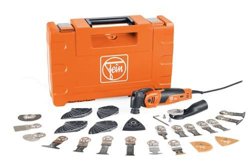 MultiTool für Ausbau und Renovierung mit 60 Zubehören · zum Sägen in Holz, Metall, Kunststoffe, zum Austrennen von Fliesen, Schneiden von Silikonfugen und Teppichen, Entfernen von Klebstoffresten und Abtragen von Fliesenkleber · Antivibrationssystem · QuickIN-Werkzeugwechsel · Hochleistungsmotor · Tachogenerator · Metallgetriebe · mechanische Schnittstelle Weitere technische Eigenschaften: · Gewicht: 1,6kg · prüfpflichtig: ja · Netzspannung: 230 V / 50 Hz