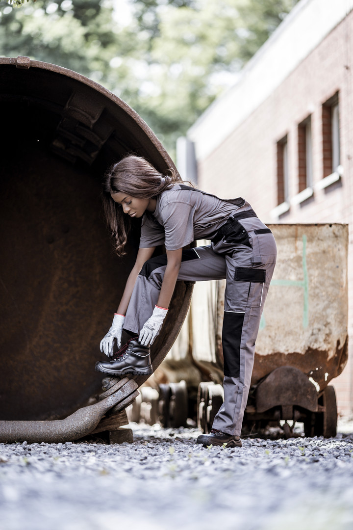 NITRAS MOTION TEX LIGHT, Latzhose, grau / schwarz (Farbcode: 1210), 245 g/qm, atmungsaktives und leichtes Material, hoher Tragekomfort, dehnbarer Bund, Verstärkungen an Bein-, Knie-, Gesäßtaschen und Latz-Außentaschen, Reflexelemente für bessere Sichtbarkeit, praktische und funktionale Details: Schenkeltasche mit Patte, Zollstocktasche mit aufgesetzter Tasche, Knietaschen für Polster mit Einschub von unten, Hammerschlaufe, stabile Clipverschlüsse, elastische Trägerabschlüsse, OEKO-TEX STANDARD 100®, Regular Fit