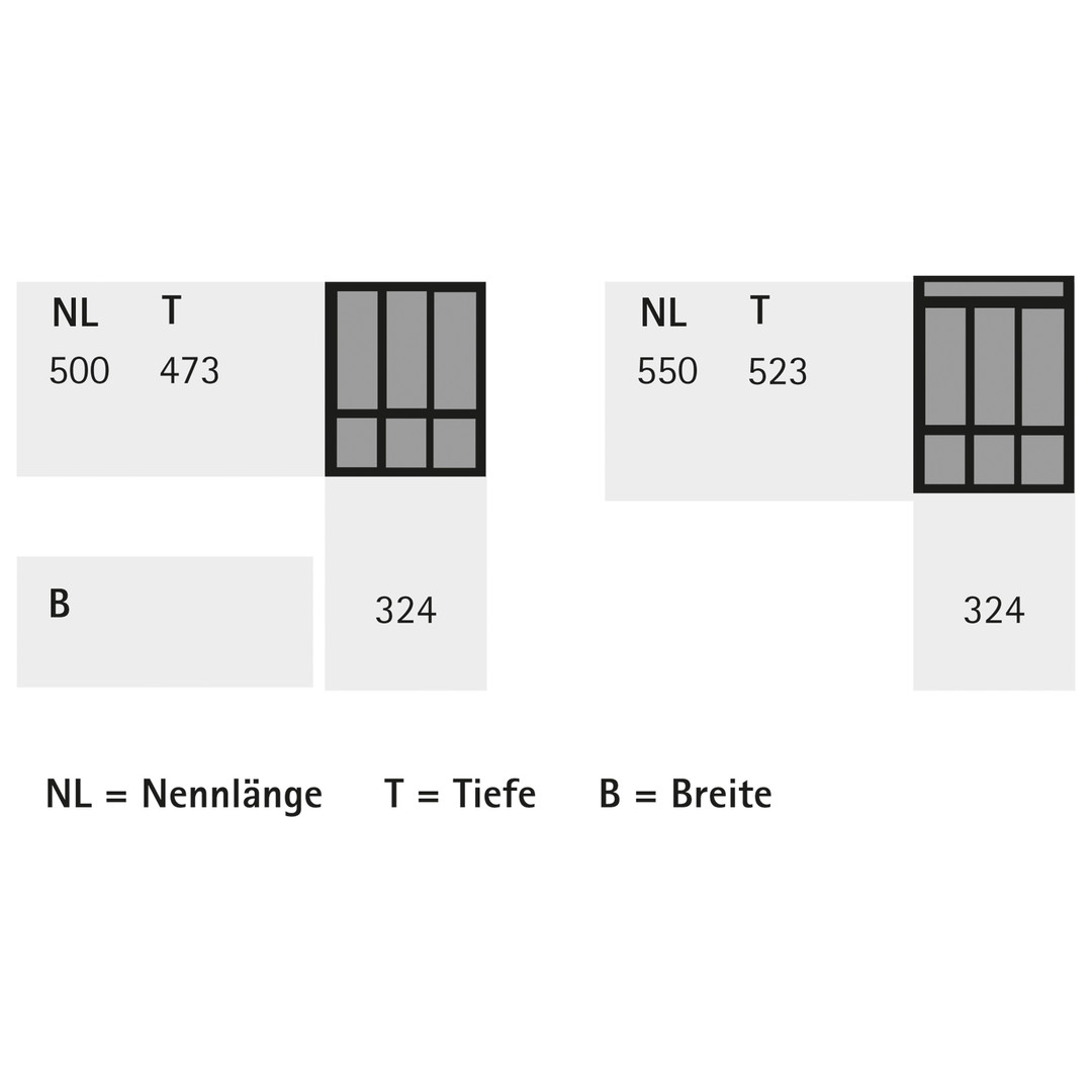 • Breitenvariabel einsetzbar ab Korpusbreite 400 mm bei AvanTech YOU bzw. 450 mm bei ArciTech