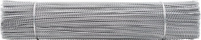 Eisen · verzinkt · Drahtstärke innen 0,5 mm - außen 0,3 mm · Gesamtstärke: 1,1 mm Weitere technische Eigenschaften: · Material: Eisen · Ausführung: geschnitten zu 1.000 Stück · Gewicht: je Bund: 1/2kg · Oberfläche: verzinkt