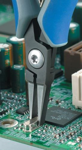 für feinste Schneidarbeiten z. B. in Elektronik und Feinmechanik · zum Greifen, Halten und Biegen · ca. 20% weniger Gewicht · geschraubtes Gelenk · Öffnungsfeder · Chrom-Vanadin-Kugellagerstahl, geschmiedet Zange brüniert · Kopf poliert · mit Mehrkomponenten-Hüllen Weitere technische Eigenschaften: · B: 21,9mm · Kopf: poliert · E: 1,4mm · A: 11,2mm · D: 6,5mm