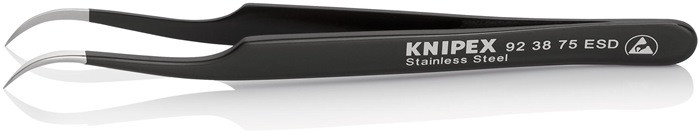 ESD-Beschichtung: blendfrei schwarz, mit einem Oberflächenwiderstand von ca. 105 Ohm · Spitzen blendfrei gebürstet · Greifflächen mattiert für optimalen Halt · Chrom-Nickel-Stahl, rostfrei, antimagnetisch (18/10) Weitere technische Eigenschaften: · prüfpflichtig: ja