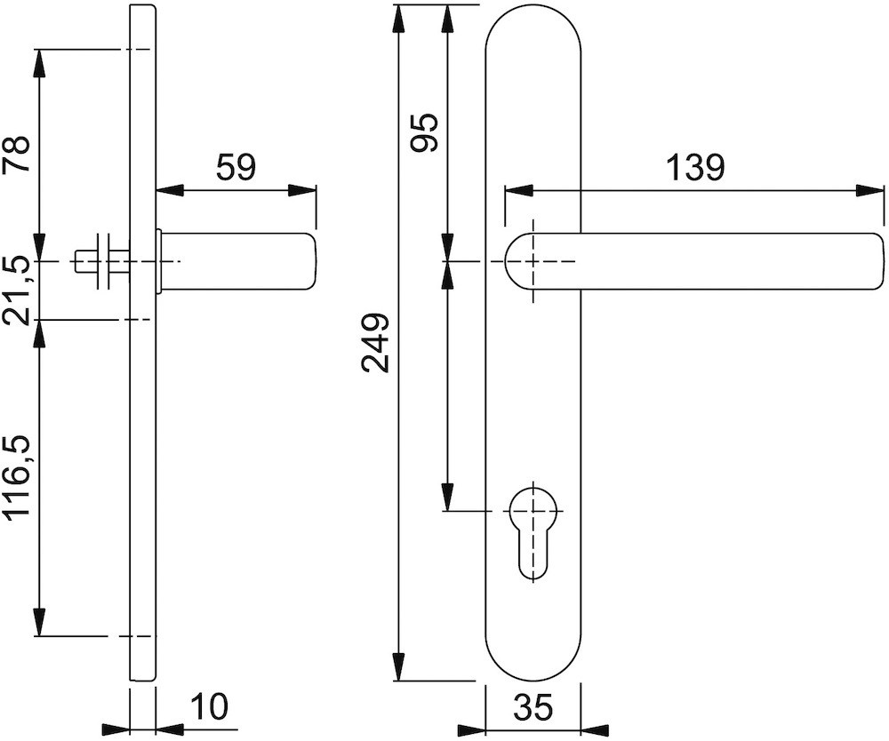 Halbgarnitur, Innenseite / F77-R messingf. poliert - Resista® / 8 mm / 40 mm vorst. / Profilzylinder 92 mm / HOPPE-Logo