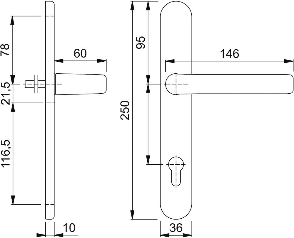 • HOPPE-Halb-Aluminium-Profiltür-Langschild-Innen-Garnitur• Serie Liverpool• Türgriff fest/drehbar gelagert mit Rückholfeder• HOPPE-Vollstift-Verbindung• Schild mit Zamak-Unterkonstruktion • Verdeckte Verschraubung
