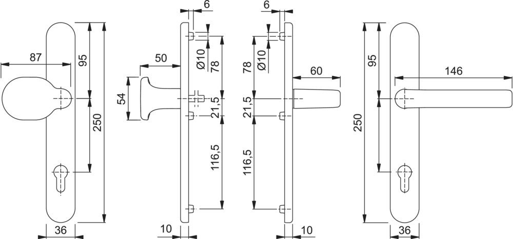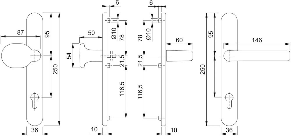 • HOPPE-Aluminium-Profiltür-Langschild-Garnitur