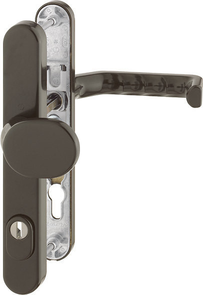 Garnitur / ES1 / F8707 (8077) dunkelbraun / 8 mm / Profilzylinder 92 mm / 67-72 mm / HOPPE-Logo