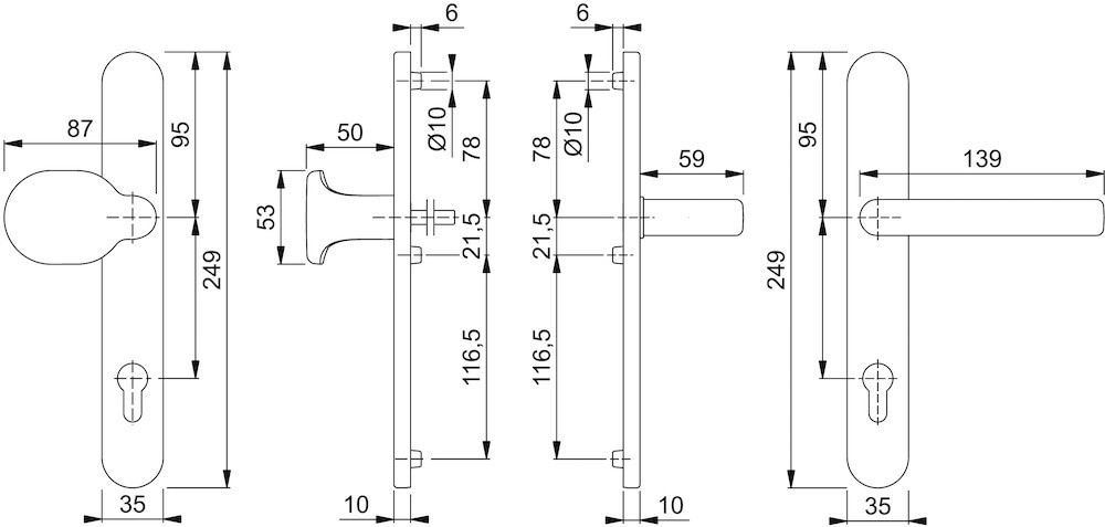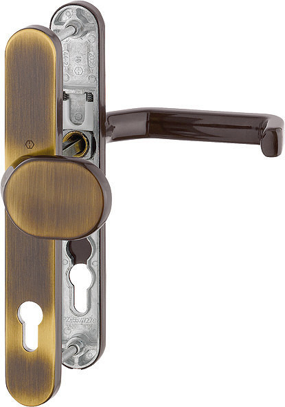 Garnitur / F73 Messing brüniert / 8 mm / Profilzylinder 92 mm / 67-72 mm / HOPPE-Logo