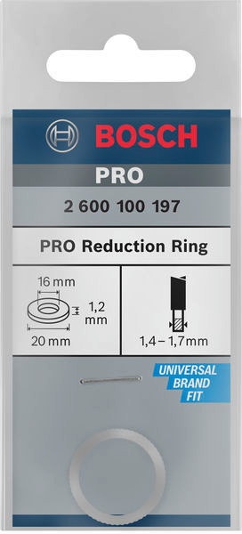 Verkleinern der Aufnahme von PRO Kreissägeblättern! Du musst Kreissägeblätter mit unterschiedlichen Aufnahmelöchern auf der Aufnahme deiner Kreissäge montieren? Verwende den PRO Reduction Ring für PRO Kreissägeblätter, um die Größe des Aufnahmelochs deiner Kreissägeblätter zu reduzieren.