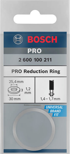 Verkleinern der Aufnahme von PRO Kreissägeblättern! Du musst Kreissägeblätter mit unterschiedlichen Aufnahmelöchern auf der Aufnahme deiner Kreissäge montieren? Verwende den PRO Reduction Ring für PRO Kreissägeblätter, um die Größe des Aufnahmelochs deiner Kreissägeblätter zu reduzieren.