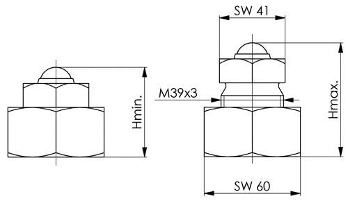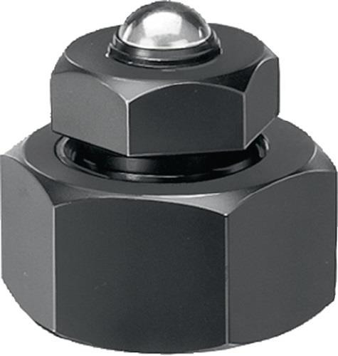 mit drehbarer Kugel · Stahl vergütet, im Brünierton angelassen · Kugel gehärtet · Anwendung: Dieses Element eignet sich mit seiner punktförmigen Auflage besonders zum Unterstützen und Ausrichten von Freiformflächen, wie Guss- und Schmiedewerkstücken. Die Justiergenauigkeit beträgt ca. 0,1 mm. Weitere technische Eigenschaften: · H min.: 56mm · H max.: 70mm · Tragfähigkeit max.: 30kN · Schlüsselweite: 41 / 60mm