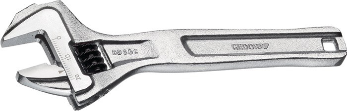 verstellbar · CV-Stahl · verchromt · Kopf geschliffen · schwedisches Modell · Rolle mit Linksgang · Maulstellung 15° · mit Einstell-/Messskala auf dem Schlüsselkopf · eine geschützte Mechanik und eine zusätzliche Schlagfläche ermöglichen leichte Schläge ohne die Funktion des Schlüssels zu beeinträchtigen ISO 6787 Weitere technische Eigenschaften: · Material: CV-Stahl · Maulstellung: 15°