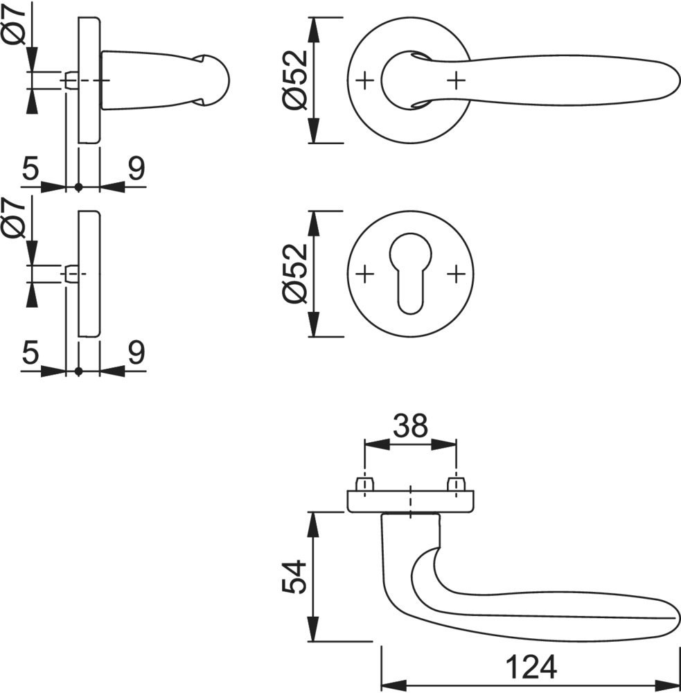 | Höhe Drückerrosette (innen) | 9 MMT |
