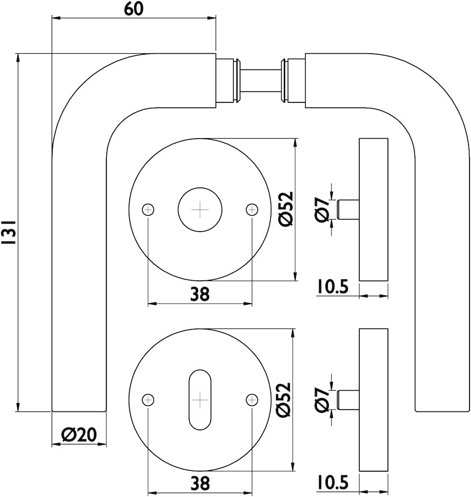 | Befestigungsart Drückerrosette (außen) | verdeckt verschraubt |