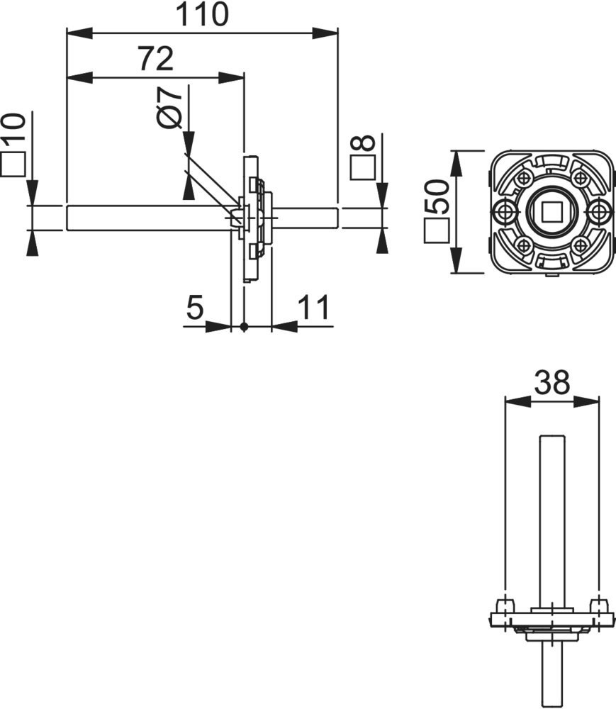 Stück, Innenseite / F7503 aluminiumsilber / mit Montagemodul / durchgehende Verschraubung / 8 mm / 27 mm vorst. / 10 mm / 72 mm vorst. / Ø18 mm / Schraubloch Ø5.3 mm, Nocke 5 mm vorstehend / RFL17