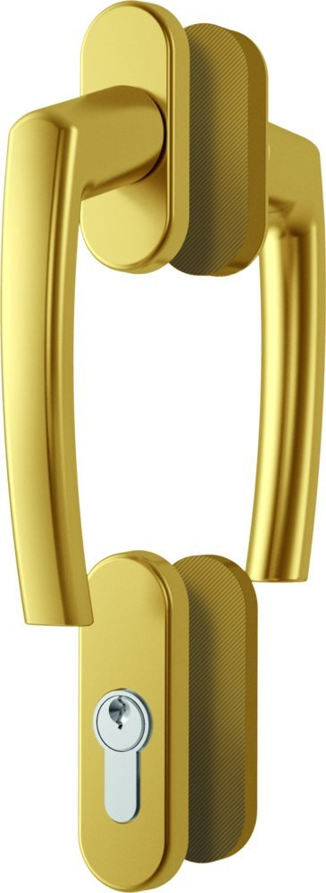 Schiebefenstertüren,Griff,Standard,Türgriffgarnitur,ohne Lochung,VK8mm,Aluminium,Patio Z,mit Vierkantstift,verdeckt verschraubt,Fensterwerkstoff Kunststoff,Holz,Aluminium,mit Stütznocken,eloxiert messing,Nockendurchmesser 10mm,DIN Links-Rechts