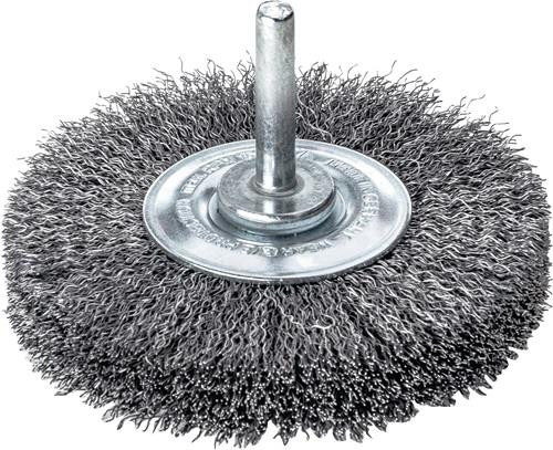 gewellter Draht · universell und flexibel zum Entfernen von Rost, Farbe, Verunreiniugngen, für leichte Entgratarbeiten · Edelstahlbürsten sind zudem geeignet für die Entfernung von Anlassfarben im bei Edelstahlschweißnähten · Schaft-Ø 6 mm