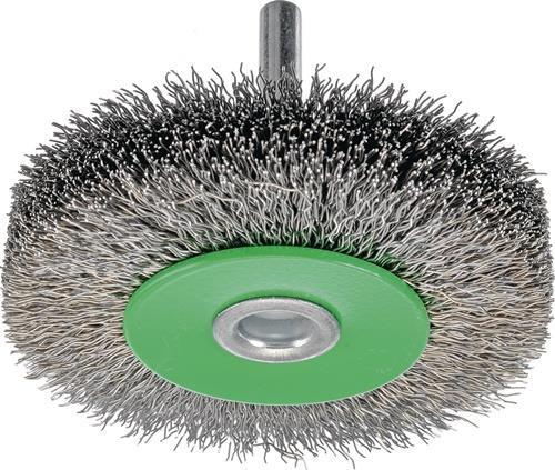 gewellter Draht · Industriequalität für den Einsatz auf Bohrmaschinen und schnelllaufenden Maschinen · Kanten verrunden · Bearbeiten von Bohrungen · Entgraten und leichte Reinigungsarbeiten · Schaft-Ø 6 mm Weitere technische Eigenschaften: · Anschluss Schaft· Bauform Rund-/Walzenbürsten· Besatzmaterial rostfreier Stahldraht