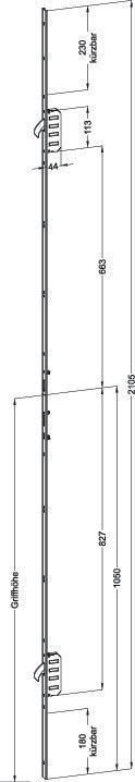 WINKHAUS Schließleiste hookLock G3 TU2460 L03 M2; Produkttyp: Schließleiste; Produkttyp (Hersteller): Schlossschiene; Verriegelungsart: Schwenkhaken; Stulpform: U-Stulp; Maßvariante/Typ: M2; Material: Stahl; Einsatzbereich: Mehrfachverriegelung; Türart: Vollblatt; Türausprägung: stumpf; Türflügelanzahl: einflügelig; Türwerkstoff: Holz,Stahl; Stulpausführung: kantig; DIN-Richtung: DIN Rechts; Zusatzfunktion-/Ausstattung: Fallenauflauf; Farbton: silberfarbig; Oberfläche: matt verchromt, gebürstet; Stulphöhe (U-Stulp): 6 mm; Stulpbreite: 24 mm; Stulplänge: 2.105 mm; Stulpstärke: 2 mm