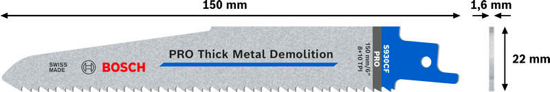 Lange Lebensdauer beim Abbruch von Schwermetallen! Bi-Metall Blatt: Kombiniert harte Zähne mit flexiblem Blattkörper Säbelsägen sind ausgezeichnete Werkzeuge für solche Aufgaben. Das PRO Thick Metal Demolition S930CF Säbelsägeblatt unterstützt dich bei der Bewältigung selbst anspruchsvollster Abbrucharbeiten. Die BI-Metall-Konstruktion aus einem stabilen HCS-Körper mit gehärteten HSS-Zähnen machen das PRO Thick Metal Demolition S930CF Säbelsägeblatt sehr robust. Die fortschrittliche 2x2-Zahnform sorgt für eine effizientere Schneidewirkung sowie für Geschwindigkeit und Langlebigkeit.