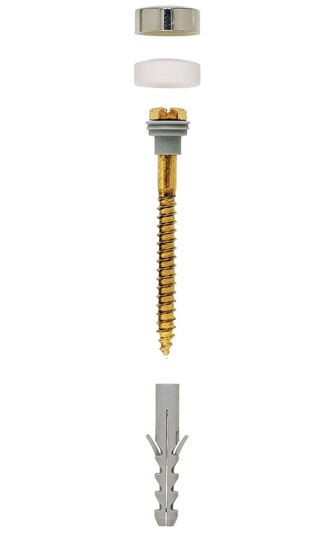 Das fischer Befestigungsset S 8 D 70 WCR beinhaltet alle Elemente zur sicheren Befestigung von Stand-WCs: 2 fischer Dübel S 8 aus hochwertigem Nylon, 2 Schrauben aus nicht rostendem Stahl 6 x 70 mit Sechskantkopf, 2 Abdeckkappen in Chrom und 2 Einrasthülsen. Das Set ist für die Vor- und für die Durchsteckmontage geeignet.