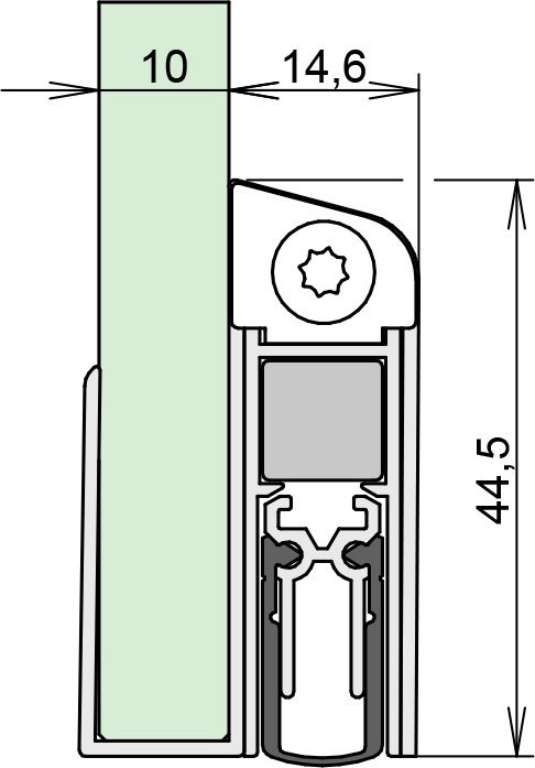 ATHMER Türdichtung Schall-Ex DUO GS-10; Produkttyp: Türdichtung; Produkttyp (Hersteller): Absenkdichtung; Absenkautomatik: Ja; kürzbar: Ja; Mindestlänge (nicht kürzbar): 650 mm; Verstellbarkeit: Nein; Druckplatte erforderlich: Ja; Auslösung Absenkautomatik: beidseitig; Typ Auslöser: Auslösefalle, Auslöseknopf; Befestigungsart: zum Aufstecken (mit U-Profil), zum Kleben; Befestigungsmittel: Steckprofil; Ausführung Dichtung: Gummidichtung; Material Dichtung: Silikon, selbstverlöschend; Material Halteprofil: Aluminium; Funktion/Eigenschaft: Rauchschutz, barrierefrei, Schallschutz; Artikelvorteile: geringere Auslösekräfte; Lieferlänge max.: 1.333 mm; Breite: 14,6 mm; Höhe: 44,5 mm; Hub: 11 mm; Türart: Drehflügeltür; Türwerkstoff: Glas; Anzahl Türflügel: einflügelig; Glasstärke: 10 mm; Einsatzbereich: Innentür; DIN-Richtung: DIN Links-Rechts; Farbe Dichtung: grau; Farbe Halteprofil: grau; Farbton Halteprofil: edelstahloptik; Oberfläche Halteprofil: eloxiert; Länge: 960 mm