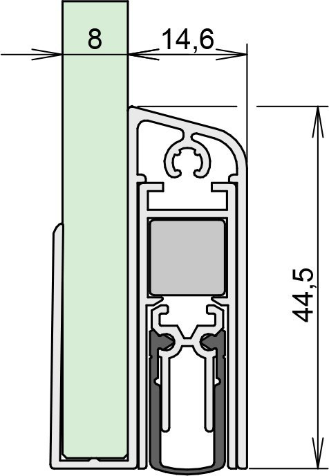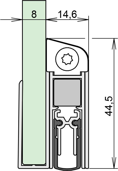 ATHMER Türdichtung Schall-Ex DUO GS-8; Produkttyp: Türdichtung; Produkttyp (Hersteller): Absenkdichtung; Absenkautomatik: Ja; kürzbar: Ja; Mindestlänge (nicht kürzbar): 650 mm; Verstellbarkeit: Nein; Druckplatte erforderlich: Ja; Auslösung Absenkautomatik: beidseitig; Typ Auslöser: Auslöseknopf, Auslösefalle; Befestigungsart: zum Aufstecken (mit U-Profil); Befestigungsmittel: Steckprofil; Ausführung Dichtung: Gummidichtung; Material Dichtung: selbstverlöschend, Silikon; Material Halteprofil: Aluminium; Funktion/Eigenschaft: Rauchschutz, barrierefrei, Schallschutz; Artikelvorteile: geringere Auslösekräfte; Lieferlänge max.: 1.333 mm; Breite: 14,6 mm; Höhe: 44,5 mm; Hub: 11 mm; Türart: Drehflügeltür; Türwerkstoff: Glas; Anzahl Türflügel: einflügelig; Glasstärke: 8 mm; Einsatzbereich: Innentür; DIN-Richtung: DIN Links-Rechts; Farbe Dichtung: grau; Farbe Halteprofil: grau; Farbton Halteprofil: edelstahloptik; Oberfläche Halteprofil: eloxiert; Länge: 833 mm
