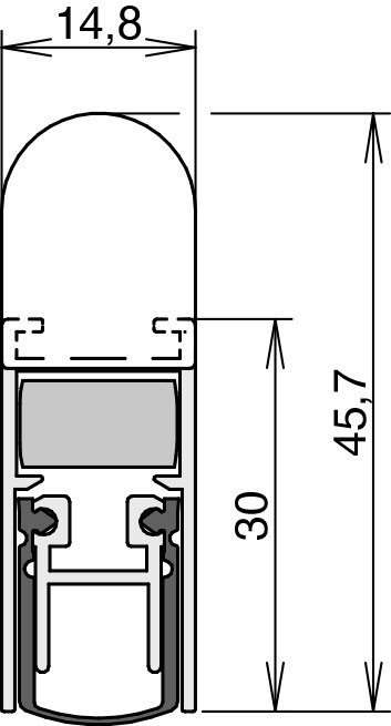 ATHMER Türdichtung Schall-Ex DUO L-15 QF; Produkttyp: Türdichtung; Produkttyp (Hersteller): Absenkdichtung; Absenkautomatik: Ja; kürzbar: Ja; Mindestlänge (nicht kürzbar): 708 mm; Verstellbarkeit: Nein; Druckplatte erforderlich: Ja; Auslösung Absenkautomatik: beidseitig; Typ Auslöser: Auslöseknopf, Auslösefalle; Befestigungsart: Nutbefestigung; Befestigungsmittel: Quick-Fix-Winkelschieber; Ausführung Dichtung: Gummidichtung; Material Dichtung: Silikon, selbstverlöschend; Material Halteprofil: Aluminium; Funktion/Eigenschaft: Schallschutz, barrierefrei, Feuerschutz, Rauchschutz; Lieferlänge max.: 1.600 mm; Breite: 14,8 mm; Höhe: 30 mm; Schalldämmwert max.: 50 dB; Hub: 12 mm; Türart: Drehflügeltür; Türwerkstoff: Holz; Anzahl Türflügel: einflügelig; Einsatzbereich: Innentür; DIN-Richtung: DIN Links-Rechts; Farbe Dichtung: grau; Oberfläche Halteprofil: blank; Länge: 960 mm