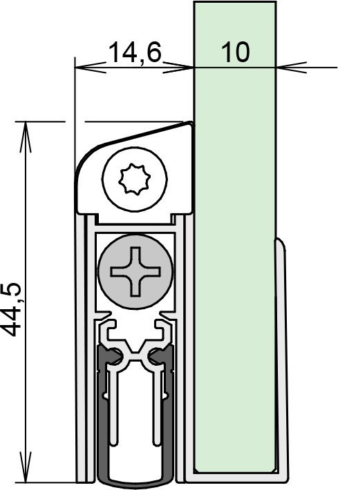 ATHMER Türdichtung Schall-Ex GS-10; Produkttyp: Türdichtung; Produkttyp (Hersteller): Absenkdichtung; Absenkautomatik: Ja; kürzbar: Ja; Mindestlänge (nicht kürzbar): 235 mm; Verstellbarkeit: Nein; Druckplatte erforderlich: Ja; Auslösung Absenkautomatik: einseitig; Typ Auslöser: Auslöseknopf; Befestigungsart: zum Aufstecken (mit U-Profil); Befestigungsmittel: Steckprofil; Ausführung Dichtung: Gummidichtung; Material Dichtung: Silikon, selbstverlöschend; Material Halteprofil: Aluminium; Funktion/Eigenschaft: barrierefrei, Schallschutz, Rauchschutz; Lieferlänge max.: 1.333 mm; Breite: 14,6 mm; Höhe: 44,5 mm; Hub: 11 mm; Türart: Drehflügeltür; Türwerkstoff: Glas; Anzahl Türflügel: einflügelig; Glasstärke: 10 mm; Einsatzbereich: Innentür; DIN-Richtung: DIN Links-Rechts; Farbe Dichtung: grau; Farbe Halteprofil: silberfarben; Farbton Halteprofil: naturfarben; Oberfläche Halteprofil: eloxiert; Länge: 835 mm