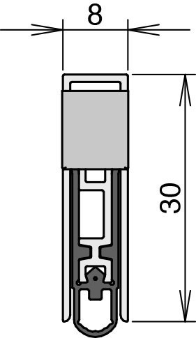 ATHMER Türdichtung Schall-Ex L-8/30 WS; Produkttyp: Türdichtung; Produkttyp (Hersteller): Absenkdichtung; Absenkautomatik: Ja; kürzbar: Ja; Mindestlänge (nicht kürzbar): 235 mm; Verstellbarkeit: Nein; Druckplatte erforderlich: Nein; Auslösung Absenkautomatik: einseitig; Typ Auslöser: Gleitauslöser; Befestigungsart: Nutbefestigung; Befestigungsmittel: Winkelschraube; Ausführung Dichtung: Gummidichtung; Material Dichtung: Silikon, selbstverlöschend; Material Halteprofil: Aluminium; Funktion/Eigenschaft: barrierefrei, Schallschutz, Rauchschutz, Feuerschutz; Artikelvorteile: ausschiebbares Innenprofil, automatischer Niveauausgleich bei unebenen Böden, kein Innenschienenversatz, Parallelabsenkung, werkzeuglose Einstellung; Lieferlänge max.: 2.000 mm; Breite: 8 mm; Höhe: 30 mm; Hub: 20 mm; Türart: Drehflügeltür; Türwerkstoff: Holz; Anzahl Türflügel: einflügelig; Einsatzbereich: Innentür; DIN-Richtung: DIN Links-Rechts; Farbe Dichtung: grau; Oberfläche Halteprofil: blank; Länge: 958 mm