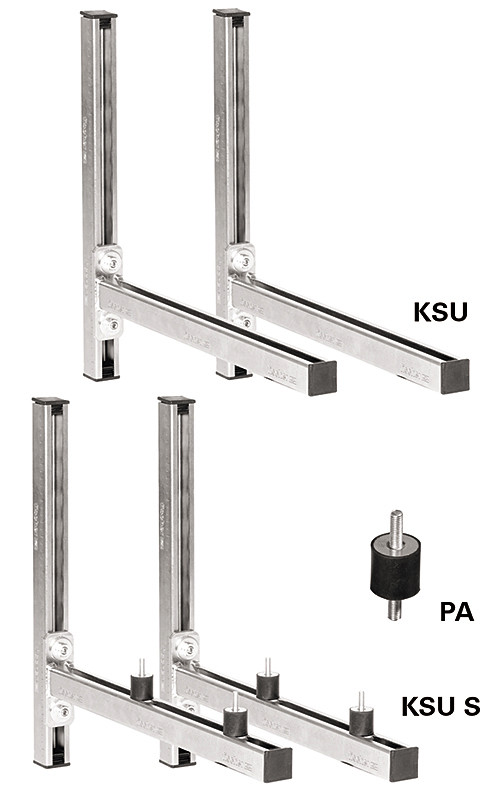 Der fischer Schalldämmpuffer PA ist ein Montageelement zur schallentkoppelten Montage von Klimaanlagen oder Pumpen auf fischer Montageschienen. Die vormontierten Elemente werden in das Schienenprofil eingeschoben. Mittels des Gewindestiftes werden die zu befestigenden Gegenstände fixiert.