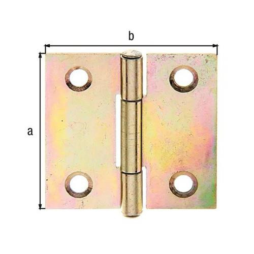 Ausführung: halbbreit mit vernietetem Edelstahlstift · Aufgrund von Umstellungen der Oberfläche kann dieser Artikel in unterschiedlichen Ausführungen (gelb-verzinkt, sendzimirverzinkt oder verzinkt-dickschicktpassiviert) geliefert werden. Weitere technische Eigenschaften: · Maß a: 31mm · Maß b: 31mm