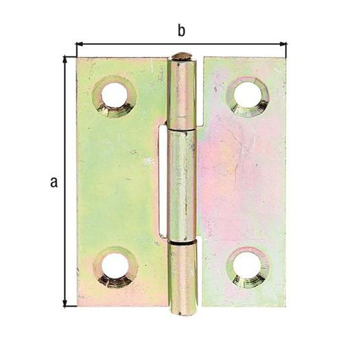 Ausführung: halbbreit mit vernietetem Edelstahlstift · Aufgrund von Umstellungen der Oberfläche kann dieser Artikel in unterschiedlichen Ausführungen (gelb-verzinkt, sendzimirverzinkt oder verzinkt-dickschicktpassiviert) geliefert werden. Weitere technische Eigenschaften: · Maß a: 41mm · Maß b: 33mm
