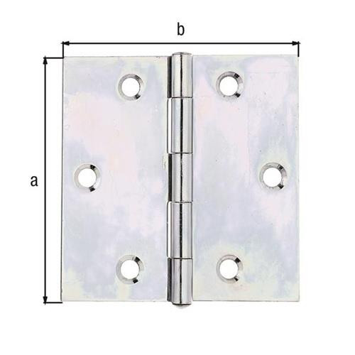 Ausführung: quadratisch, Gewerbeeinteilung bis 40 mm = dreiteilig, ab 50 mm = fünfteilig · mit vernietetem Edelstahlstift · Oberfläche: sendzimirverzinkt Weitere technische Eigenschaften: · Maß a: 70mm · Maß b: 70mm