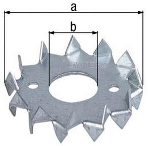 doppelseitig · gefertigt nach DIN 1052 (EN912) · Material: Stahl · Oberfläche: sendzimirverzinkt Weitere technische Eigenschaften: · Maß a Ø: 48mm · Maß b Ø: 17mm