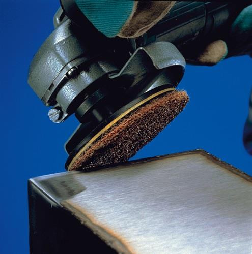 geeignet für Edelstahl, Baustahl und NE-Metalle · zum Reduzieren von Rautiefen · Entfernen von Anlauffarben · Glätten von Oberflächen · leichte Reinigungs- und Entgratungsarbeiten · durch Kletthaftung wird ein schneller Scheibenwechsel ermöglicht · kletthaftend · ungelocht