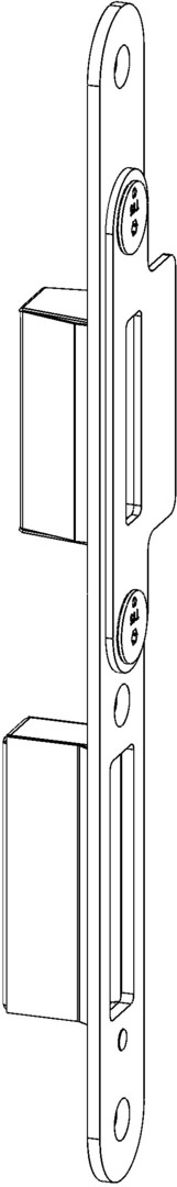 WINKHAUS Lappenschließblech F24-908 U; Produkttyp: Lappenschließblech; Produkttyp (Hersteller): Schließblech; Ausführung: mit Kunststoffeinlage; Ausfräsung: mit Fallen und Riegelausschnitt; Material: Stahl; Einsatzbereich: Türrahmen; Form: rund; DIN-Richtung: DIN Links; Farbe: silber; Oberfläche: matt verchromt; Schließblechbreite: 24 mm; Schließblechlänge: 235 mm; Schließblechstärke: 2,5 mm; Radius: 12 °; Zusatzinformation: Schließplatte FA 18,5 mm