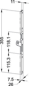 WINKHAUS Profilschließblech U26-176; Produkttyp: Profilschließblech; Produkttyp (Hersteller): Türfänger; Ausfräsung: mit Riegelausschnitt; Material: Stahl; Einsatzbereich: Türrahmen; Form: kantig; DIN-Richtung: DIN Rechts; Farbe: silberfarben; Oberfläche: matt verchromt; Schließblechbreite: 26 mm; Schließblechlänge: 355 mm; Schließblechtiefe: 7,5/11 mm; Profilsystem: Profine,Salamander